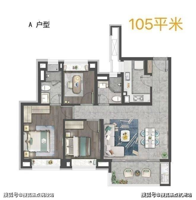 以 99㎡三房两厅两卫户型为例,客餐厅连接景观阳台,采光面更大,为日常生活带来更多舒适感,双卫设计更为生活增添便利。105㎡三房两厅两卫户型,客餐厅与阳台一脉相连,居住空间感进一步扩大,约 5.1 米的宽厅,无论是日常休憩还是会客,都尽显大方得体。此外,项目中央空调、地暖、新风三大件配套齐全,且臻选大金等同级品牌空调地暖、老板和方太等同级品牌厨房配备、摩恩、弗兰卡、科勒等同级品牌卫浴配备 ,每一处细节都彰显着对居者的用心,为您打造高品质的居住环境。