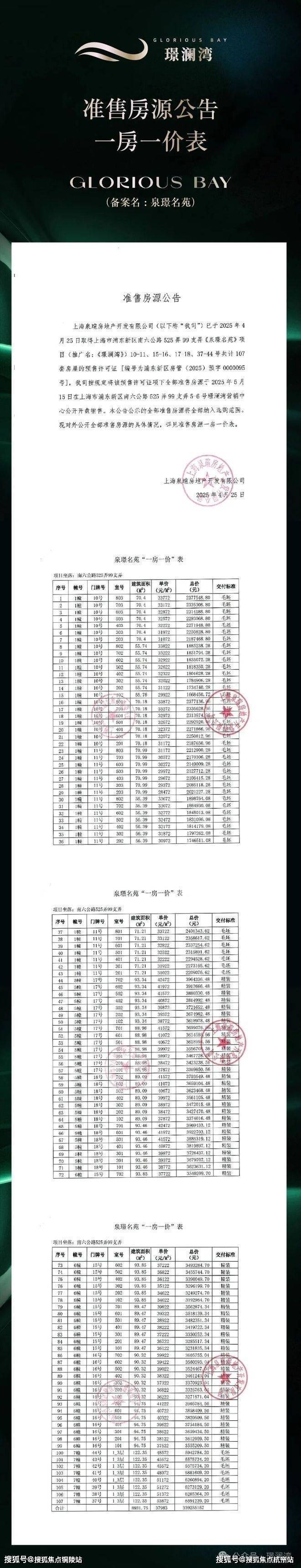 一房一价表: