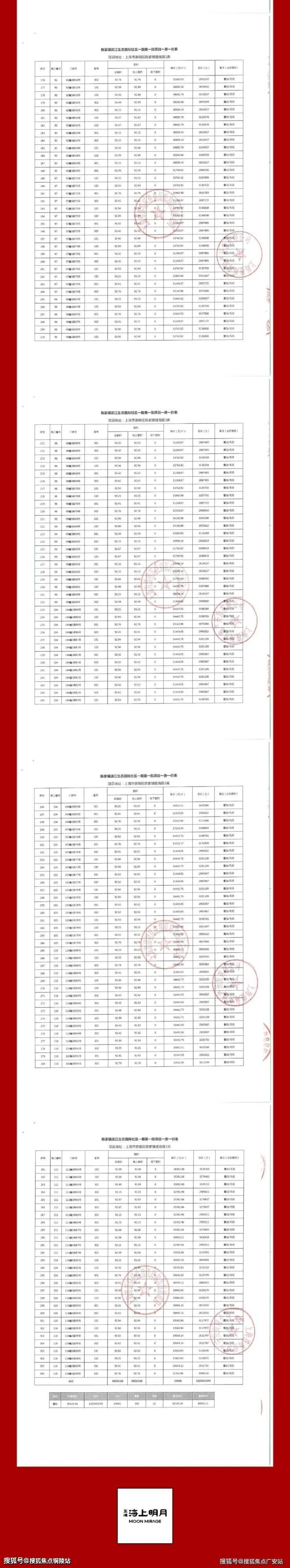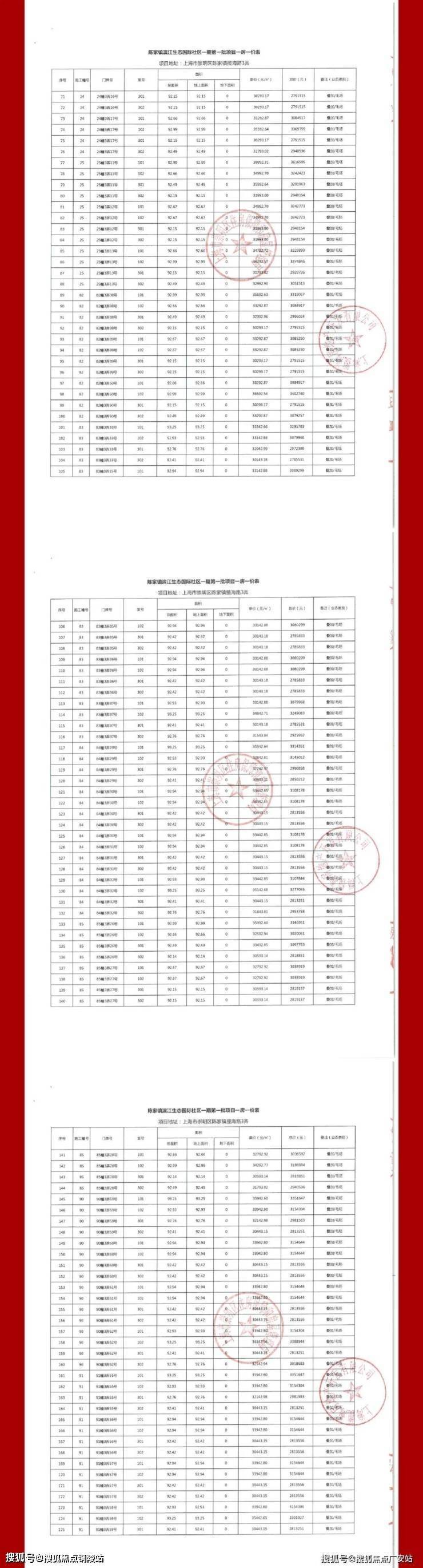 一房一价表公示: