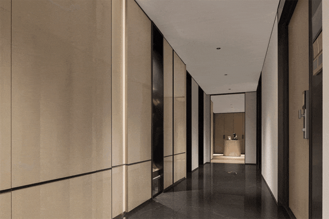 墙面大量运用特色蜥蜴皮、丝质面料以强调卓越品质,并通过夹丝玻璃实现虚实结合,营造一种隔而不断的朦胧美,自然优雅的气息弥漫而出,包容、随性的生活理念也在尽情蔓延。