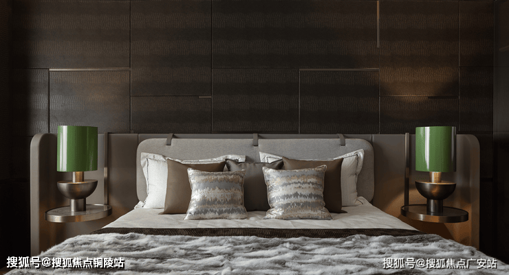 次卧延续开篇仪式感,以特殊工艺手法打造的床背极具特色,床头柜与飘窗一体链接,与整体流线相结合,勾勒出丰润舒畅的状态。突出的材质纹理,以涓涓细流述说着生活的诗意。