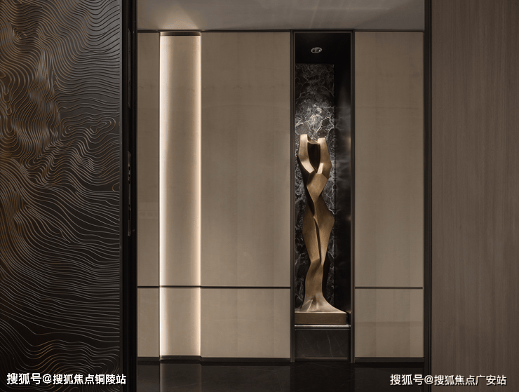 玄关作为家宅之始,便以温暖材质与柔和灯光相迎。通顶柜体的设计,暗藏存储空间,让出行与归来皆倍享自在。辅以嵌入的雕塑艺术,既是端景,又可机动变换为节日活动主题元素,在方寸之地赋予入户无限可能。