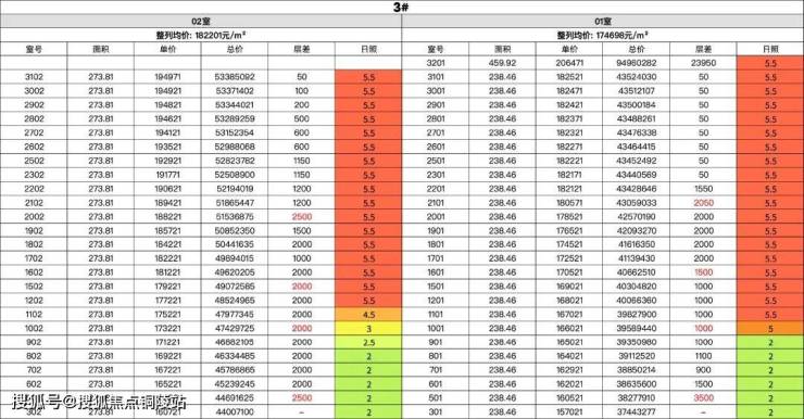 建面约238㎡户型的均价约17.3万/㎡,建面约275㎡户型的均价约18.2万/㎡,