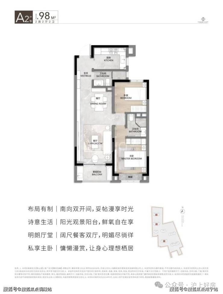 在售面积:94㎡/98㎡/100㎡2房2厅2卫
