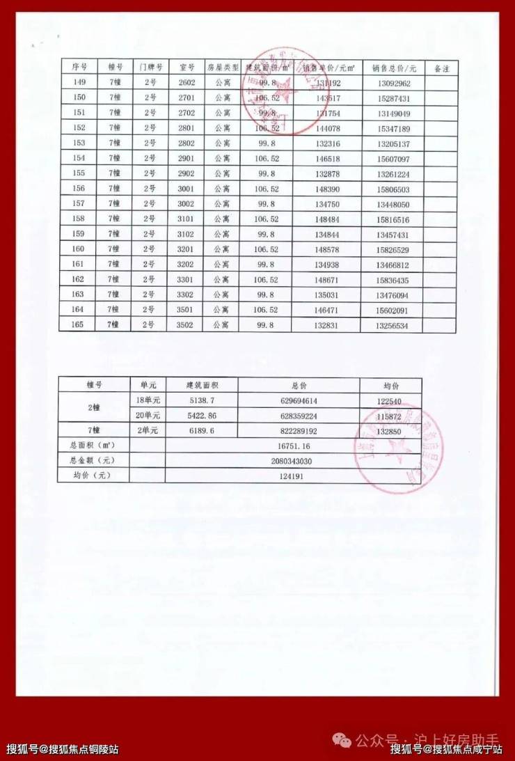 均价124191元/㎡ 共165套