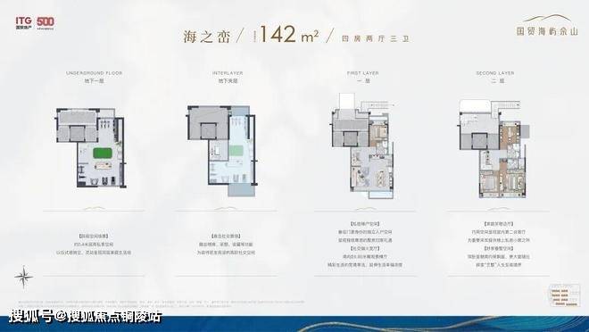 建面约142㎡的4房2厅3卫,私享入户空间。地下一层及夹层空间,层高约5.4米,可以根据喜好进行不同的功能布局,为美好生活添加无限可能。