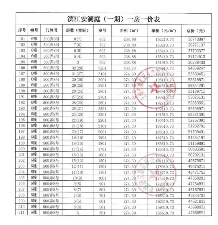 建面约195㎡,总价预计2700-3400万,折算单价约13.8-17.5万元/㎡