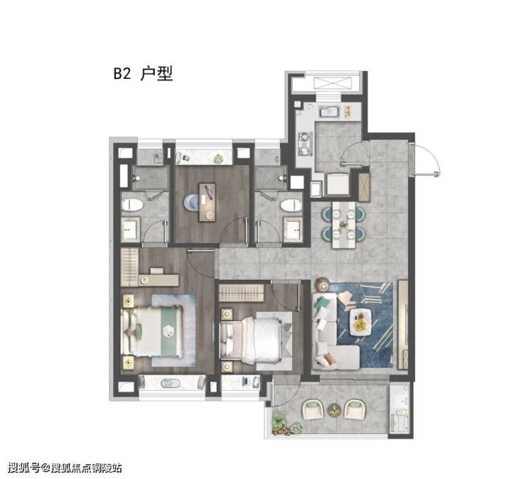 在整体的户型设计上,项目在做到方正户型的基础之上,保持多开间朝南设计,采光优越。整体户型动静分离,居住体验感更佳。