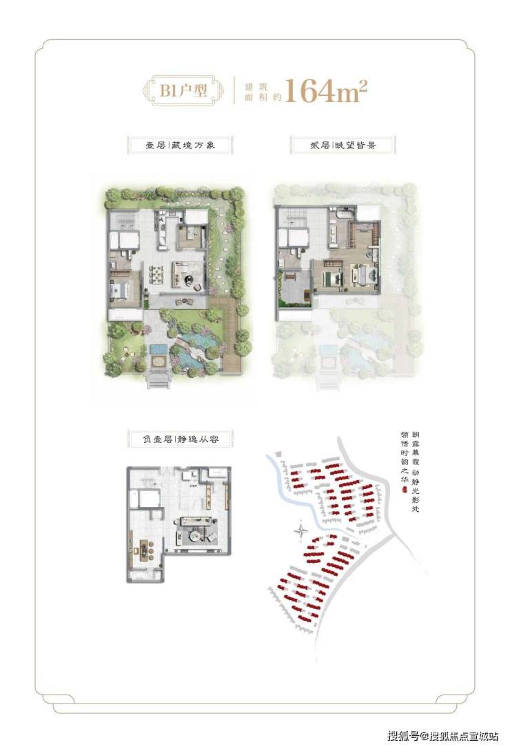 项目二期为纯别墅产品,社区容积率约0.41,面积段约为138-455㎡之间不等,不仅延续了一期多重景观结构,出市入室的仪式感满满,更是提升为围合式院落结构,增加了转角街巷之间的景观点,细节之处尽显大宅风范和业主的雍容气度。除常规的有天有地之外,还配有超高层高地下室及露台。