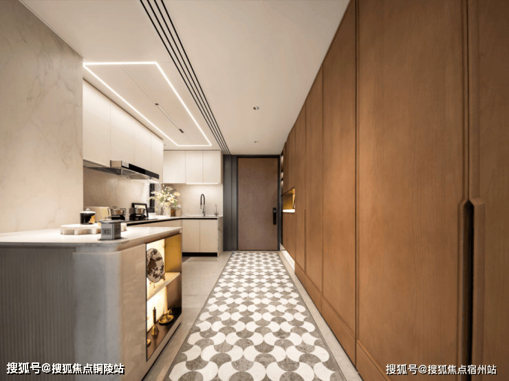 更让人惊喜的是,这里还有智能家居系统、消毒鞋柜以及用于冰箱内嵌冰箱的“S墙”。仅仅是入户这一部分,就已经亮点满满,让人充满期待。可以想象,在这样的空间里生活,每一天都如同置身于梦幻之中。