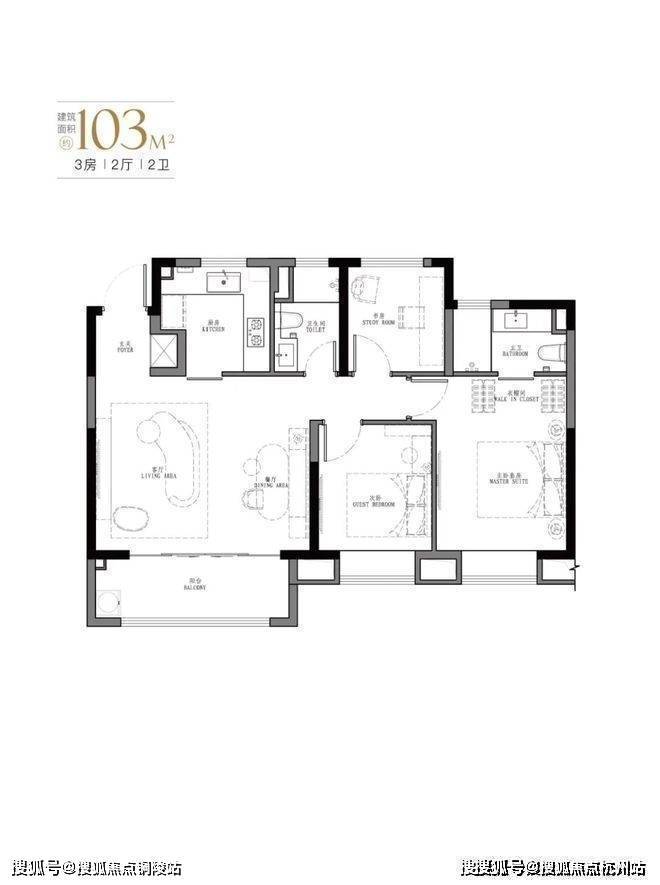 产品:103㎡、107㎡的三房两厅两卫及123㎡、129㎡的四房两厅两卫。