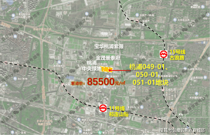 2023年8月,上海二批次土拍,宝华&东苑以总价328800万元成交普陀区桃浦科技智慧城(W06-1401单元)049-01、050-01、051-01地块,地块出让面积30126.9㎡,容积率2.5,溢价率4.05%,楼板价43655元/㎡,房地联动价85500元/㎡。