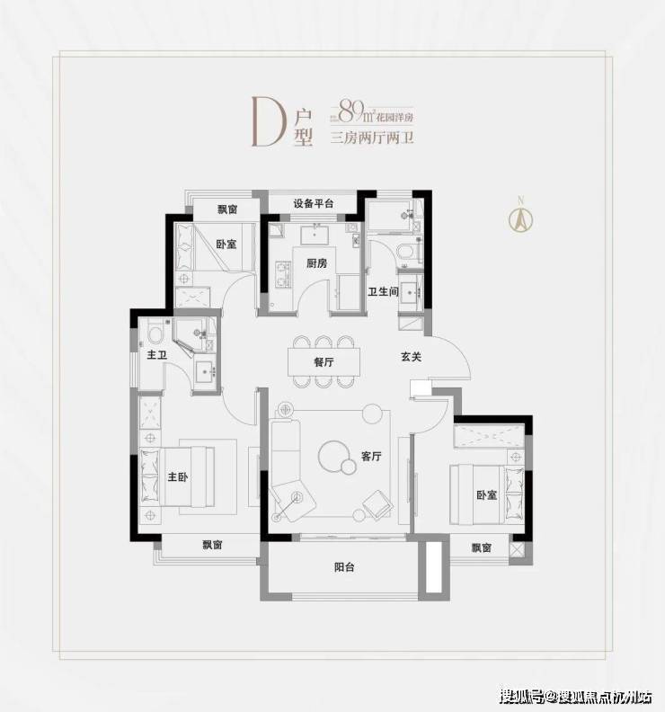 洋房建面约89㎡3房2厅2卫