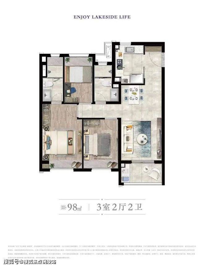 高层雅居:建筑面积约89㎡三房、建筑面积约98㎡三房、建筑面积约130㎡四房;