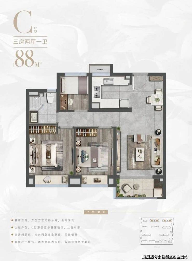 【安联虹悦官方售楼处咨询热线】400-8855-420(24小时服务,人工客服8:00-22:00)项目所在地块三面环水,带来半岛式的社区格局,缔造城市中难得的水岸生活。项目总建筑面积约12.5万方,总规划8栋14F和3栋16F小高层,涵盖建筑面积型分别为88/95㎡的三房两厅一卫、99㎡的三房两厅两卫和133㎡的四房两厅两卫“全龄全时成长型”户型。通过凝萃全球都会高端美学共识,以大幅面钻幕美学立面,打造韵律感建筑,筑起水岸轻奢生活。将优雅写意融入生活,打造大虹桥品质人居社区,为城市铺就一方美好栖居,实现人与人、人与自然、建筑与自然的交融共生!
