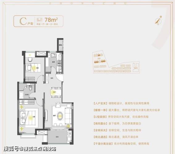 洋房总高8层,建筑面积约55-89㎡1-3房,精装交付,共计176套,有4个主力户型,包括建面约55、56㎡1房,78㎡2房,89㎡3房。