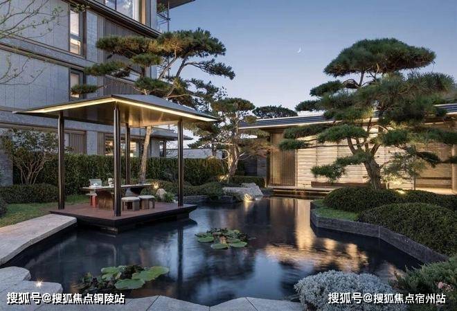 庭院的选材也极具讲究:太行山金景石堆叠成小山丘,岭南古桩铁冬青与中华原生乌桕树移栽而来,蕴含“聚财守业”的美好寓意。细节之处,经得起推敲,让人越看越有味道。