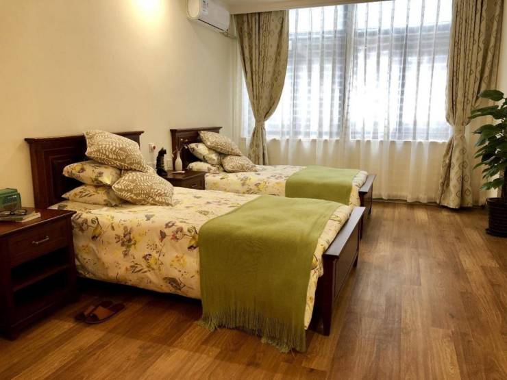 设施特色:上海市长宁安馨第二敬老院由两家欧式酒店改造而成,豪华套房、单人间、双人间、三人间、四人间,房间配电视机、沙发、桌椅、冰箱、衣柜、鞋柜、独立卫生间、洗澡间、空调等,每个床边有紧急按钮。
