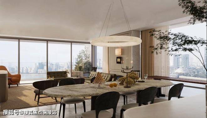 510㎡天际顶复拥有270°无界环幕视野,南向全落地采光大窗,西侧双露台分别连接客餐厅和会客厅,东侧露台更设计了悬浮露天泳池,直面黄浦江世界水岸。