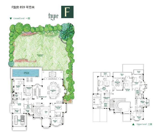社区建筑采用欧式设计风格,外立面均为文化砖及黄金麻干挂石材打造,配备涉外别墅级草坪活动广场、下沉式露天泳池、喷泉广场,高成本打造精致又舒适的社区环境。景观则采用横纵对称设计,拥有完善的河岸景观及滨水步道。
