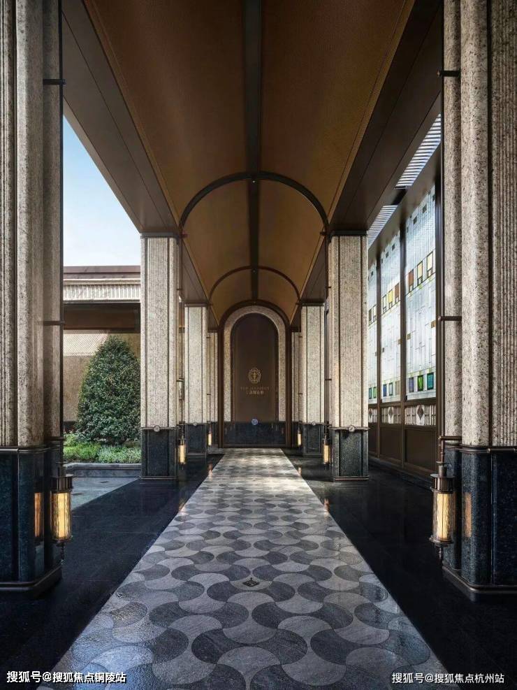 约30米的艺术连廊,借鉴PRADA荣宅多立克柱式以及和平饭店的拱形廊道,摩登海派,魅力十足: