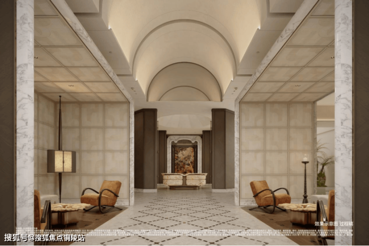 情绪光厅:作为连接地下停车场与会所核心区的过渡枢纽,完成从行车动线到休闲场景的情绪转场,让归家心境在此渐渐舒缓沉淀。