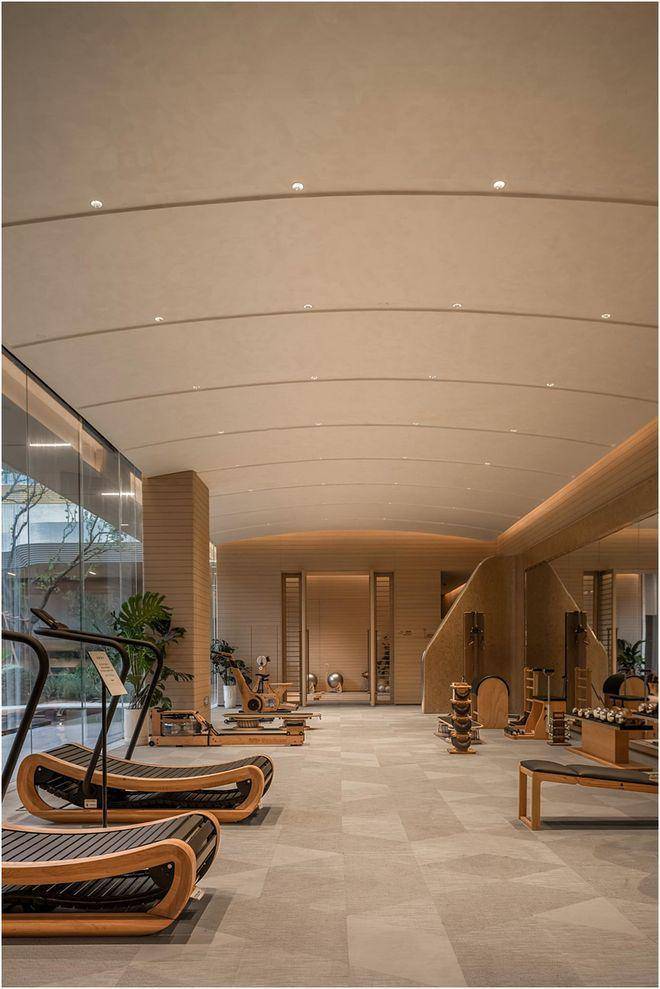 自然贯穿了整个社区公区的设计语言,整体约1200㎡立体会所+约1700㎡主题架空层,配备了私宴厅、瑜伽室、棋牌室等休闲空间。