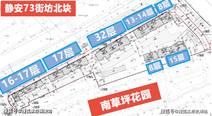 根据设计方案显示, 北地块拟建5栋高层住宅,目前项目已结构封顶