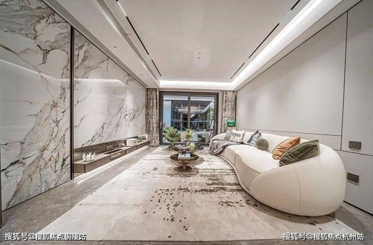 样板间实景尺度奢阔,面宽约4.2米的客厅采光效果好的同时也是相当气派~