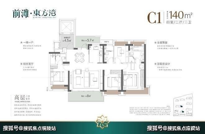 ④产品升级:全铝板立面+带恒温泳池会所+全部(类)1梯1户+标准层高3.1-3.15米,适配高端改善人群居住。