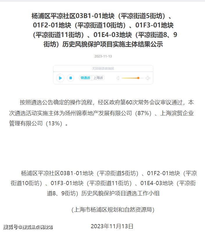 2023年12月,中信泰富(87%)联合杨浦国资(13%)通过协议出让,以总价1143905万元,楼面价63127元/m²竞得4宗打包地块:杨浦区平凉社区03B1-01地块(平凉街道5街坊)、01F2-01地块(平凉街道10街坊)、01F3-01地块(平凉街道11街坊)及01E4-03地块(平凉街道8、9街坊),总建筑面积18.1万㎡。(其中住宅建筑面积11.3万㎡,办公建筑面积5.2万㎡,商业建筑面积1.6万㎡)