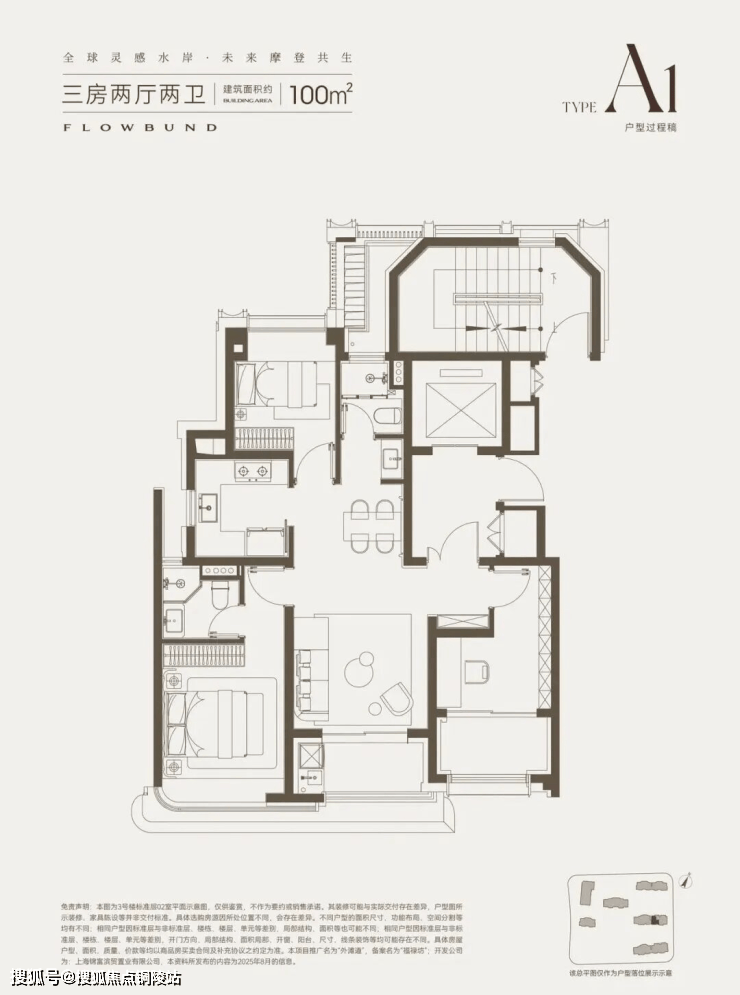 100㎡级入门型, 三开间朝南,南北通透,全明户型。 配备独立梯厅和圆弧阔景飘窗,市面罕见的高配。