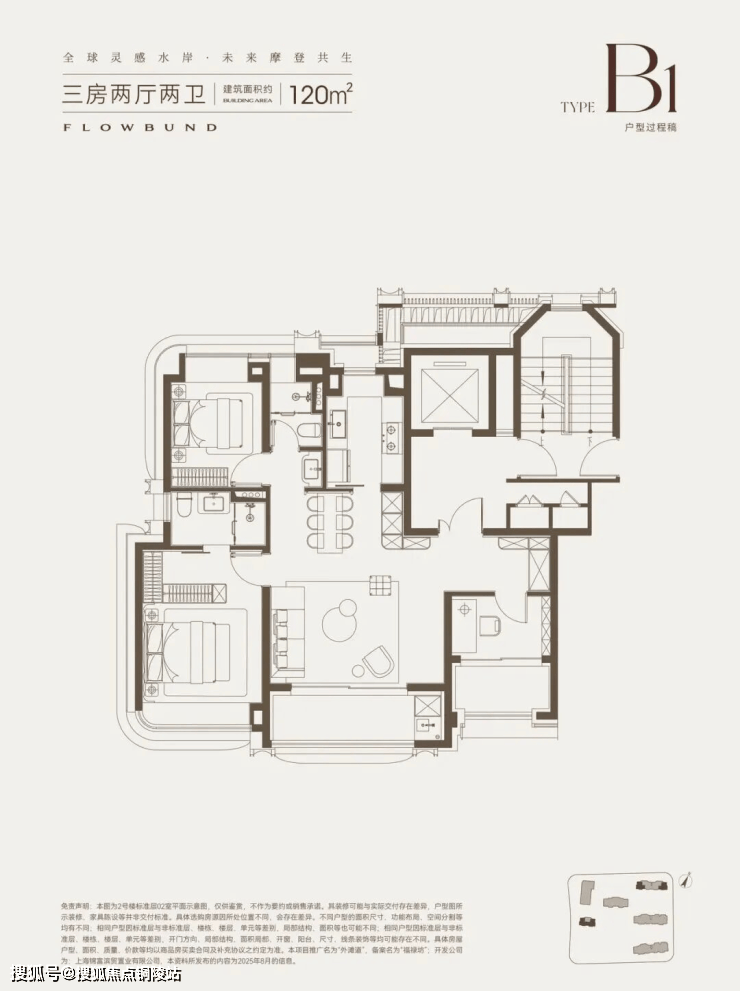 LDKB一体化,中西双厨房、餐厅、客厅外接弧形转角宽景大阳台, 空间尺度感拉满!