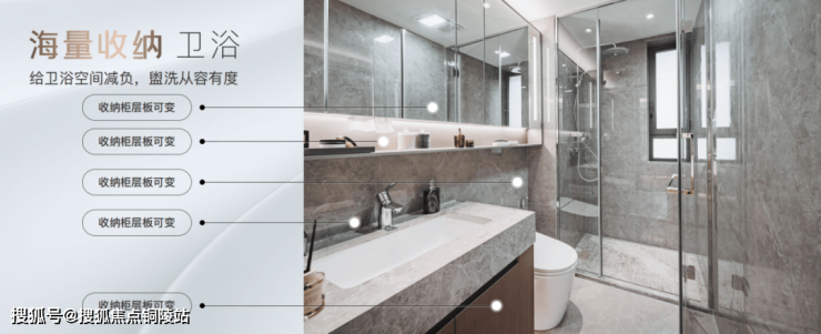 最后值得一提的是,项目还有很多个性化定制设计,包括防雾镜、美颜灯、电热毛巾架、岛台轨道插座(约93㎡户型)、预留美妆冰箱等。