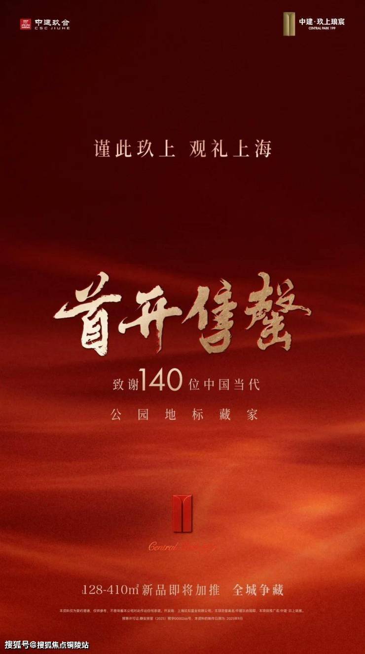 最新消息!大宁公园对面,1/20号线地铁口,中建玖合静安大宁项目案名为【中建玖上琅宸】少量建面约128-410㎡当代公园地标作品!均价14.68万/㎡,总价1436万起!280㎡美学样板间开放,公园豪宅迎来顶藏之作!还有折扣优惠惊喜+5万车位劵!售楼处线上火热预约中!