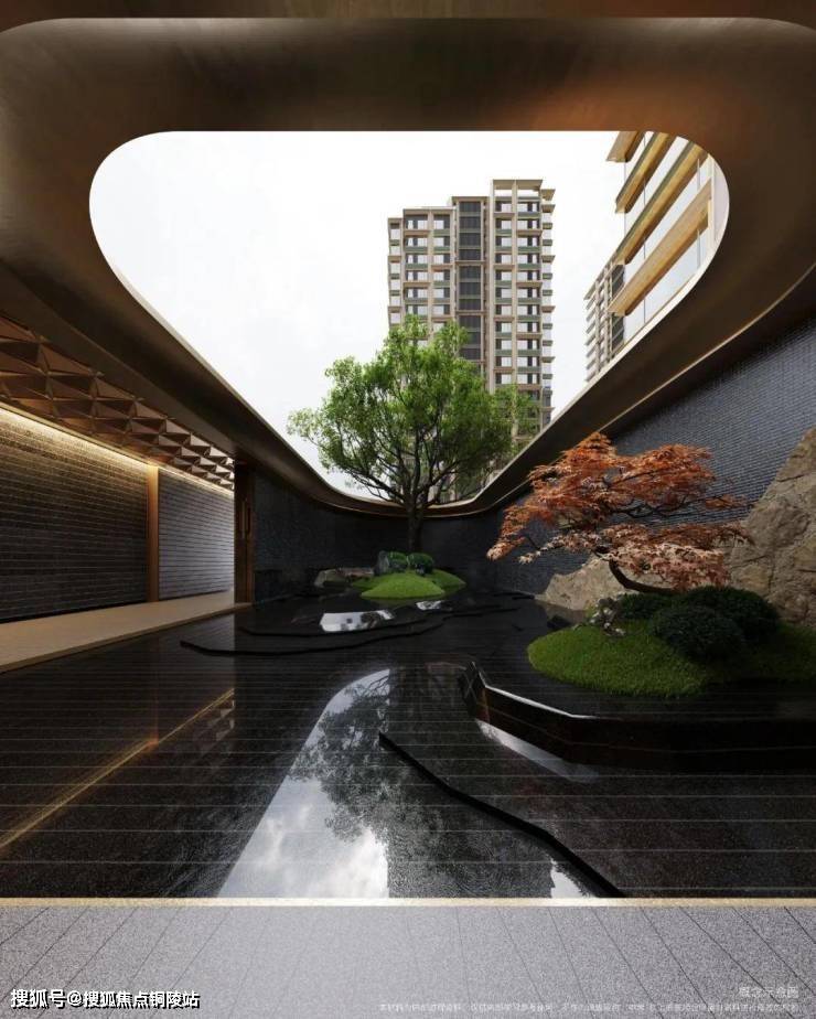 社区内部,设计团队以豫园为灵感蓝本,运用现代手法重新诠释豫园的“山脉”与“水脉”,打造出一座立体起伏的山水园林。
