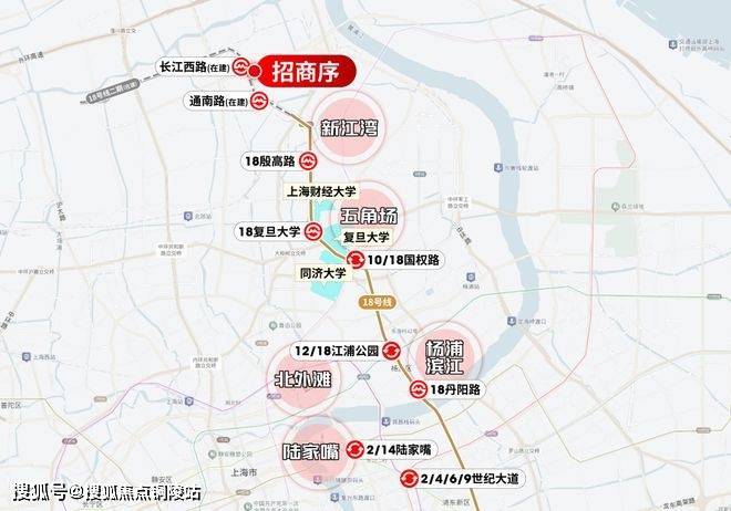 预计今年年底通车的18号线二期含金量太高了。未来从招商序所在的长江西路出发(在建)出发,2站就是新江湾,4站财大,5站复旦,6站五角场,8站新华医院,11站杨浦滨江,12站陆家嘴滨江...并且,每站之间的距离很短,所以实际的通勤效率比想象中要更高。