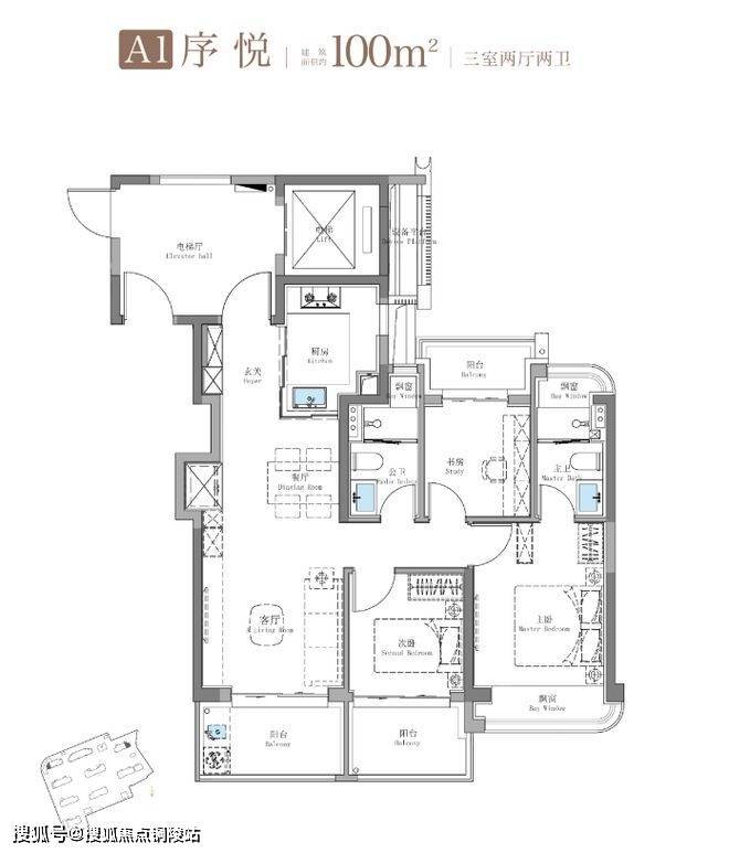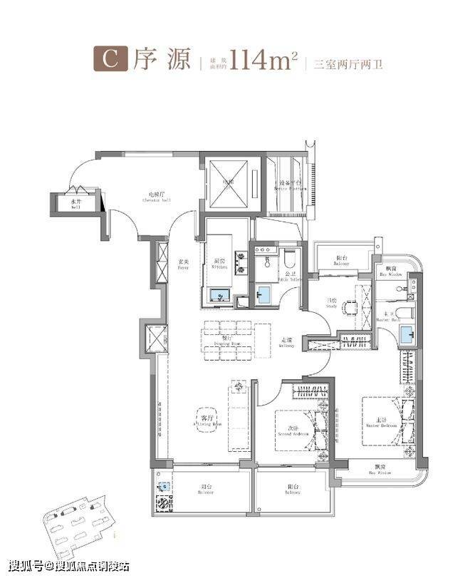 再来看建面约114㎡三房,百平三房的升级款,让人拥有“这是120㎡”的错觉!