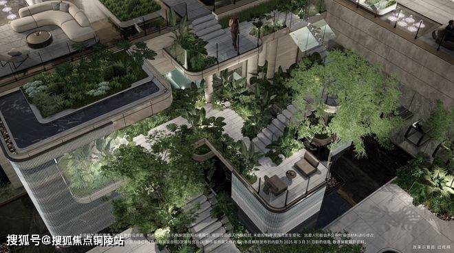 同时,搭载环幕级落地窗,户外,是垂直景墙、悬浮观景台与叠水景观立体穿插的园林景观,一边锻炼,一边欣赏窗外景色,让业主归家即享度假生活。