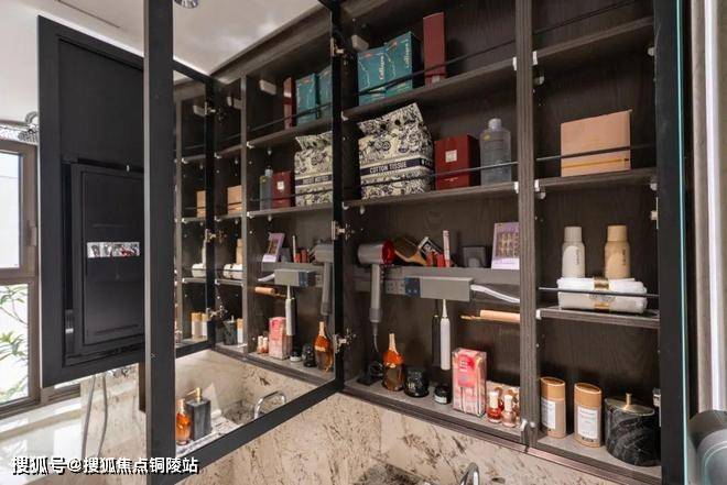 卫生间镜柜,同样是交付标准,内外双镜打造,主卫配置美妆冰箱,可用来收纳业主的面膜、化妆品等,设计贴心。