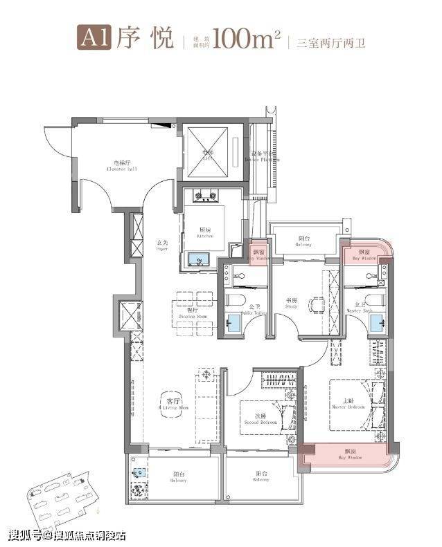 市面上常规高层的百平三房,我们按常规约75%得房率来计算,在计入飘窗和一半阳台的情况下,实得率,也很难突破85%!
