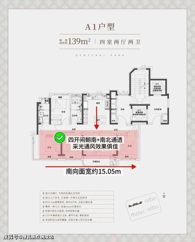 亮点一:经典四开间朝南+大横厅设计,超绝采光户型!