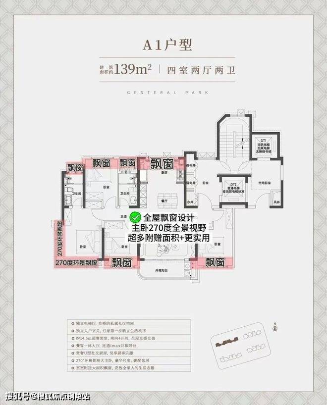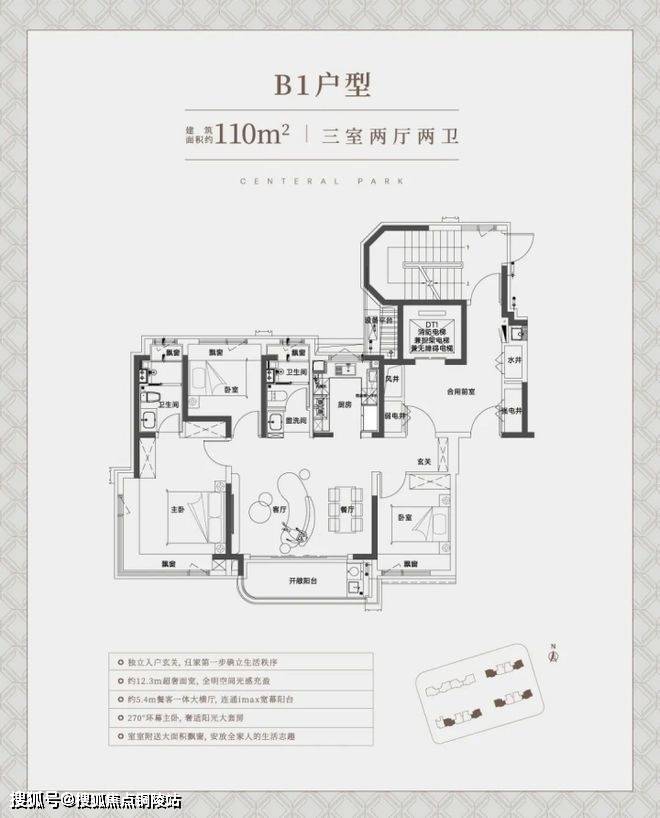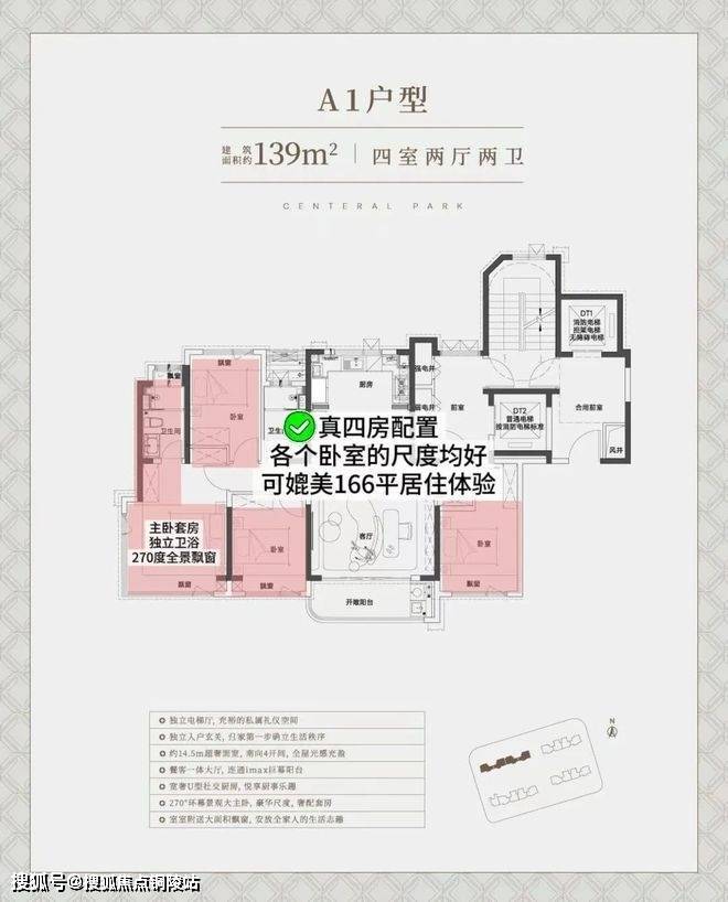 中环铂樾售楼处电话:400-9699-334✨【官方认证】✅✅✅建面约139㎡的户型(西边套),独立电梯厅+罕见的大横厅设计,大面宽短进深,约15.05m的南向奢阔面宽,无论是采光感、尺度性都拉到了极致,享受城央豪宅级别的采光。