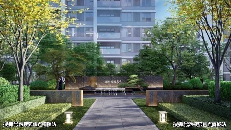 以多种名贵植物的阵列形式,打造星级酒店式入户门仪,同时高层及洋房单元入口更设有约0.9m的高景墙,沉稳质感,营造摩登奢雅的尊崇体验。