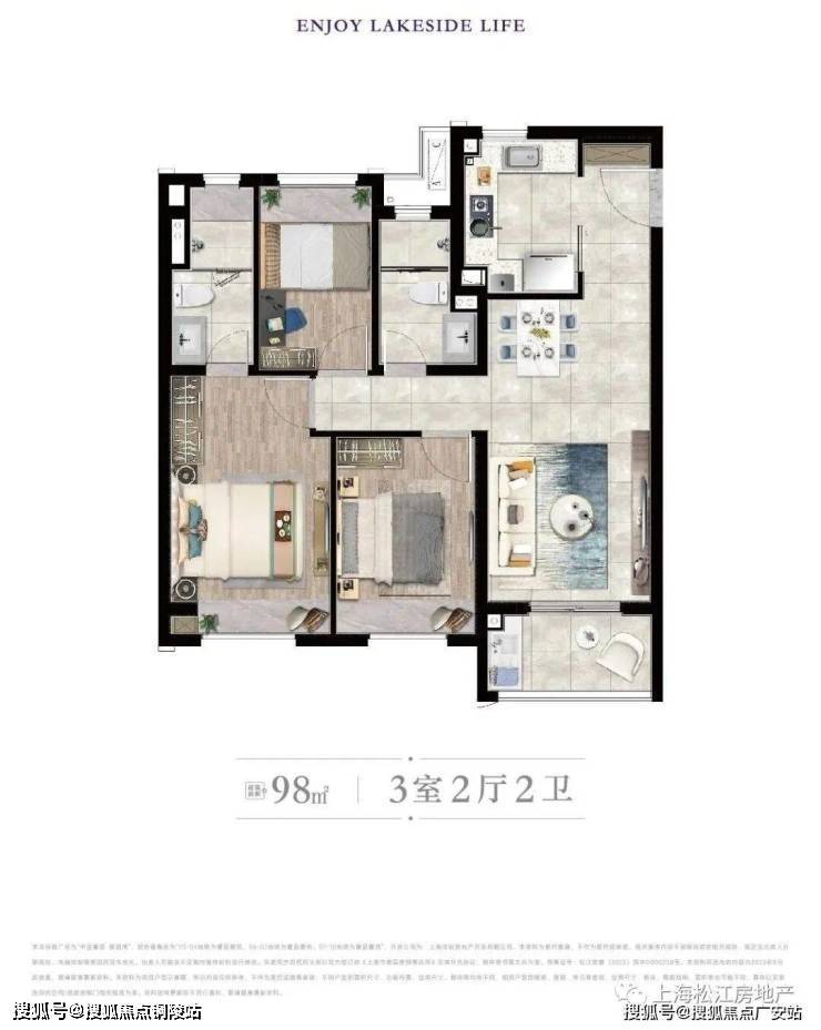 建筑面积约98㎡三房,总价507起