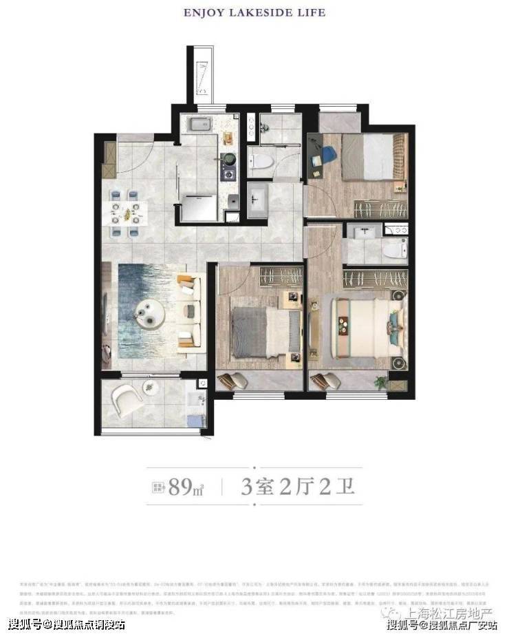 建筑面积约89㎡三房,总价448万起