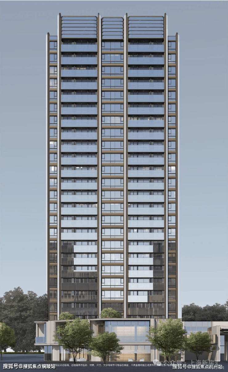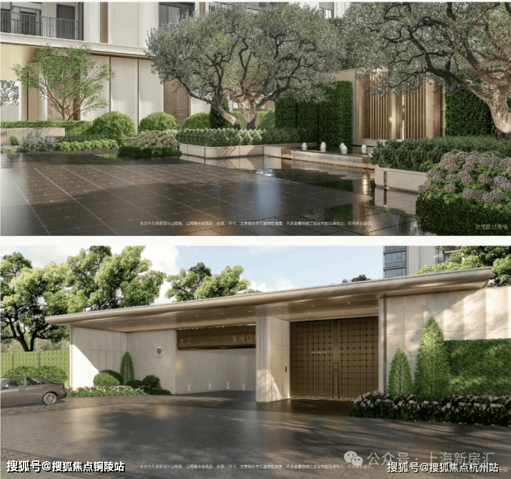 项目打造现代海派风格的外立面,线条简洁大气;社区规划六重生活体验空间,从酒店式落客入口、镜面水庭到美学花园,旨在将高端酒店的奢享基因融入日常生活。