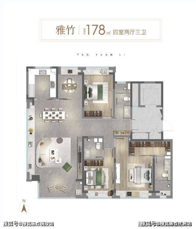 通过新桃源会客厅社区广场与独立社区会客大堂、林荫归家步道、中央景观聚场、品质入户单元昭示性景墙+专属入户铺装、首层精装大堂五大节点,赋予归家路途更多逸趣与美好。