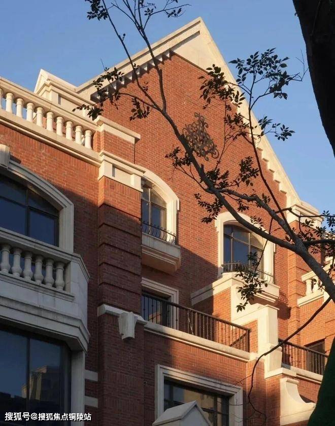 联排别墅采用英式维多利亚建筑风格,红砖与德国米黄干挂石材的搭配,形成温暖且经典的色调;经典长窗/方框窗/八角窗/拱形造型/坡屋面,赋予建筑精巧自然的美学质感。