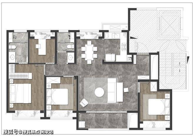 对于二人情侣,是安放衣物与家庭办公的温馨空间,衣帽间、书房、学习,充分满足二人生活的多元生活。面对三口之家,可以从婴儿房进阶为儿童房,伴随年龄结构的变化,而不断调整自己的定位。